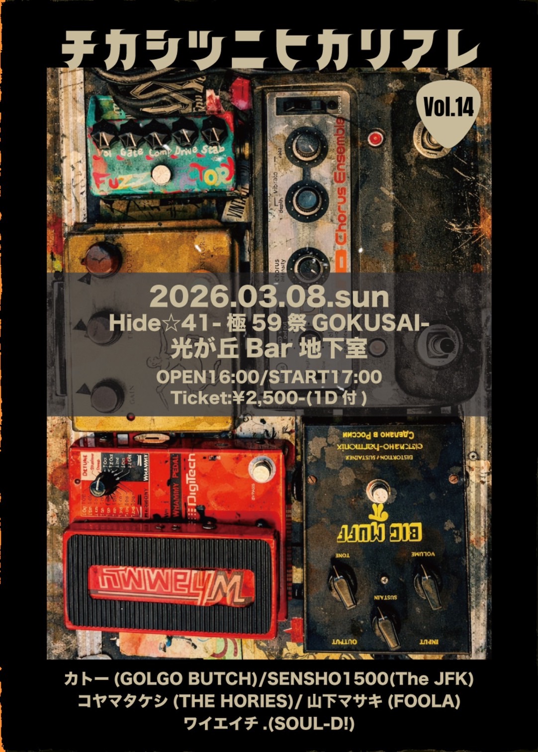 3/8(日)光が丘Bar地下室HIDE☆41-極59祭GOKUSAI- <act>カトー(GOLGO BUTCH)SENSHO1500(The JFK)コヤマタケシ(THE HORIES)山下マサキ(FOOL