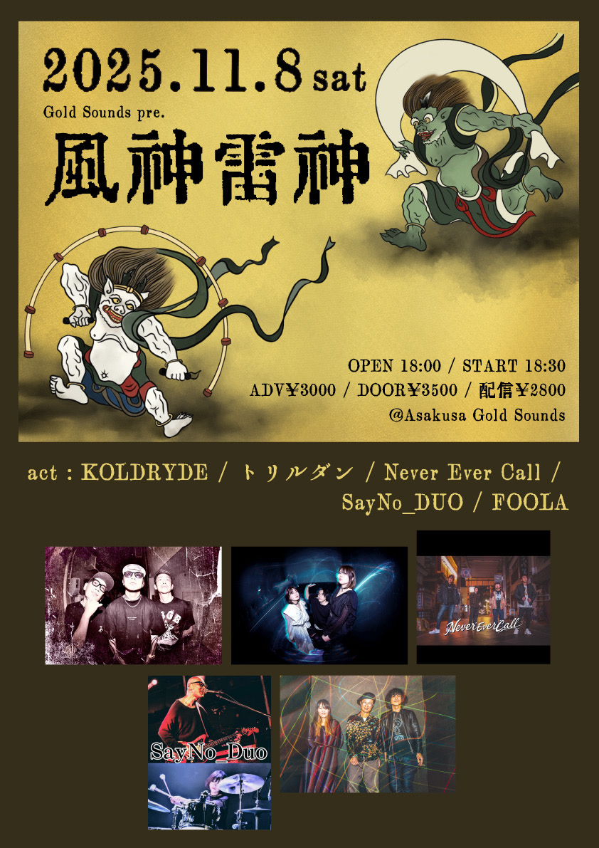 11/8(土)浅草Gold SoundsGold Sounds presents”風神雷神” <act>KOLDRYDEトリルダンNever Ever CallSayNo_DUOFOO
