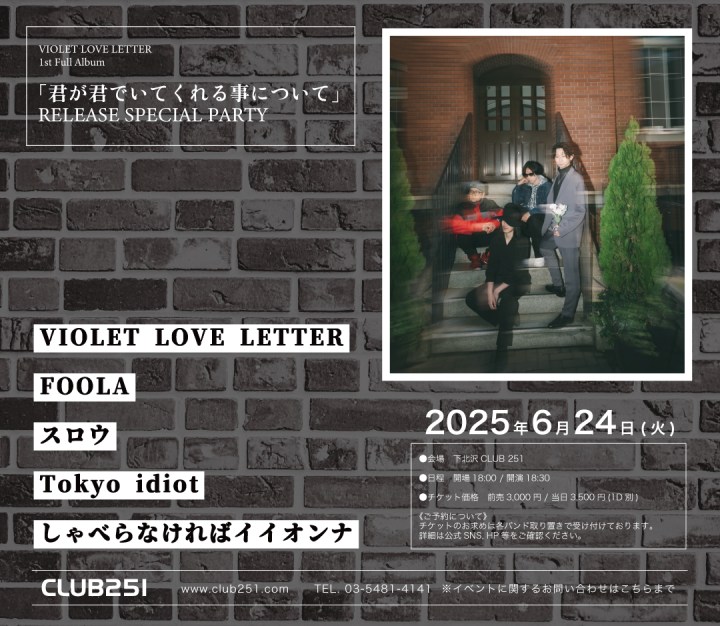 6/24(火)下北沢Club251 VIOLET LOVE LETTER 1st Full Album「君が君でいてくれる事について」RELEASE SPECIAL PARTY