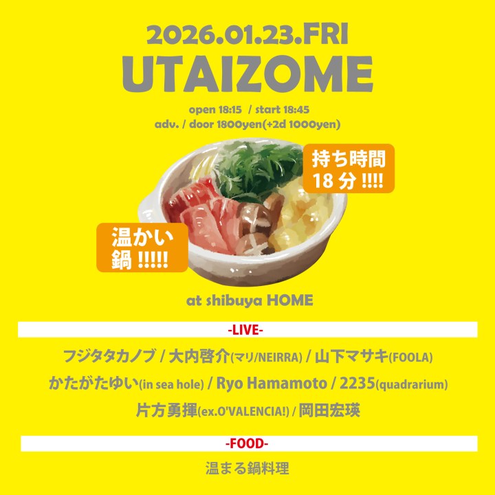 1/23(金)渋谷HOME“UTAIZOME”