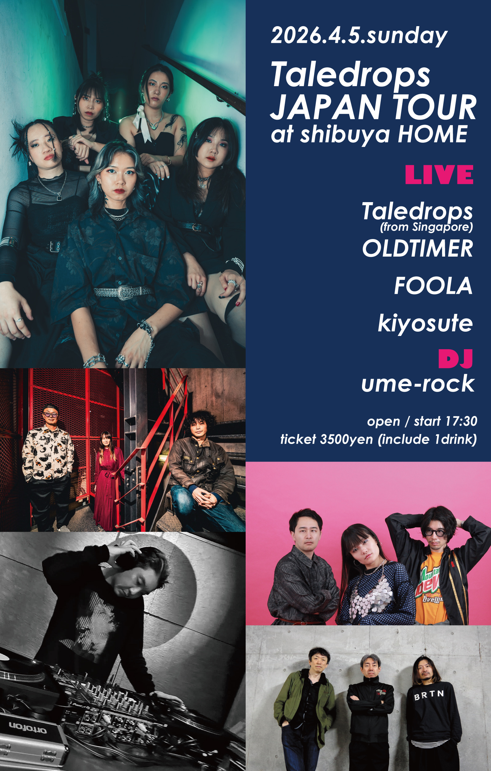 4/5(日)渋谷HOME “Taledrops(from Singapore)JAPAN TOUR”