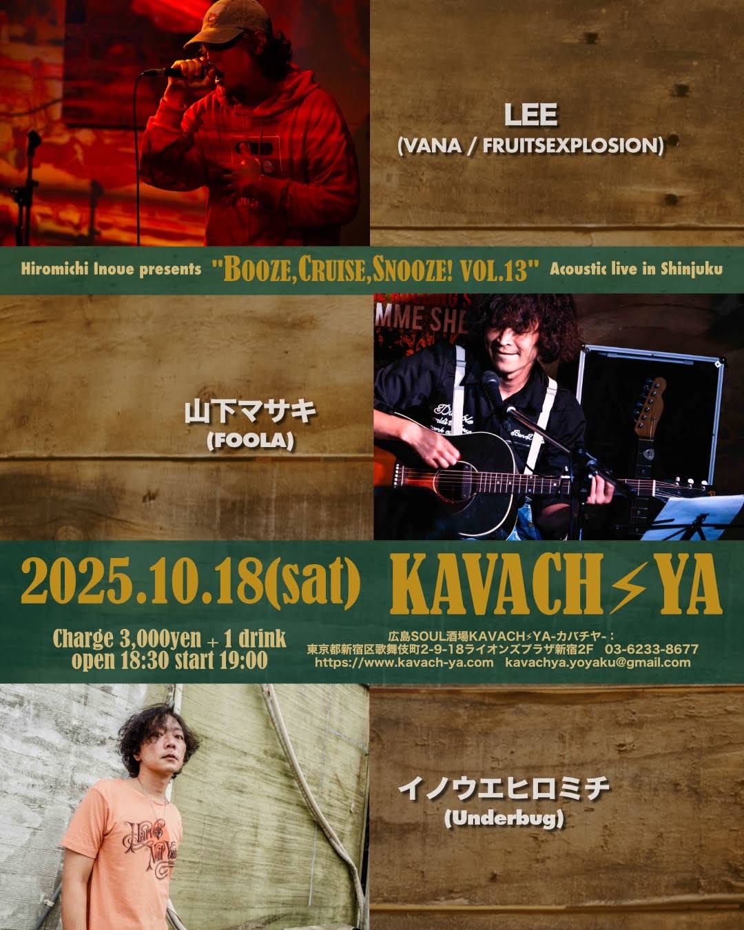 10/18(土)新宿歌舞伎町KAVACHIYAHiromichi Inoue presents“BOOZE, CRUISE, SNOOZE! vol.13” <act>LEE(VANA