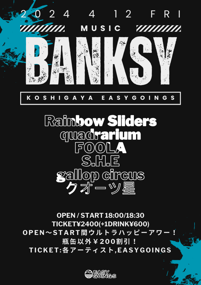 4/12(金)越谷EASYGOINGS(埼玉) EASYGOINGS IMR presents.“MUSIC BANKSY” <ACT>Rainbow Slidersquadrariu